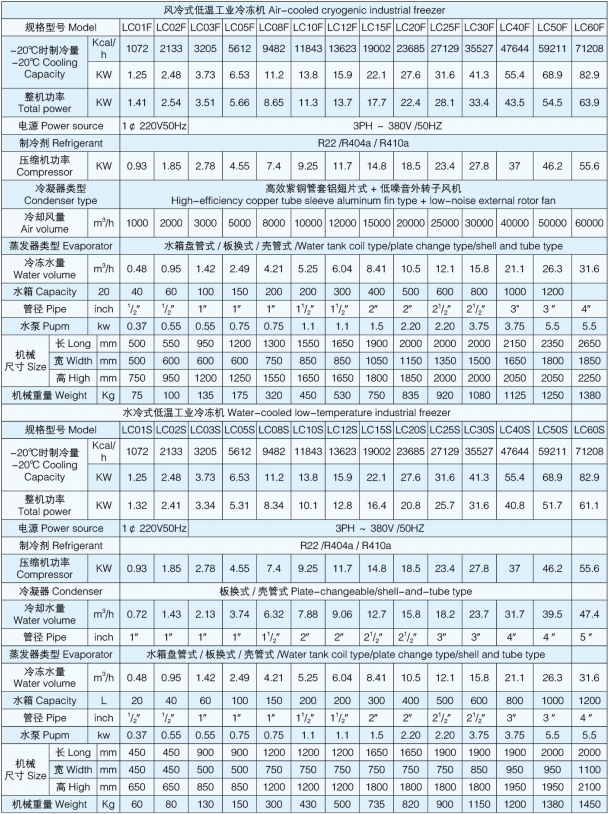 LC 系列低溫工業(yè)冷凍機,主要是針對醫(yī)藥、化工、食品飲料等特殊行業(yè) ,本公司精心設(shè)計開發(fā)的新一代低溫冷凍設(shè)備. 其溫度控制范圍可在-30 ℃~+40℃之間可任意調(diào)節(jié),優(yōu)先選用國際知名品牌壓縮機 , 制冷充足、規(guī)格齊全,是工業(yè)制冷設(shè)備的典范。