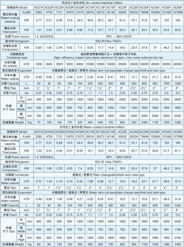 AC系列工業(yè)冷水機(jī)具有體積小、安裝使用方便、在室內(nèi)可任意移動(dòng)等特點(diǎn)。壓縮機(jī)、水泵、溫控表、壓力控制等優(yōu)選使用全球知名品牌產(chǎn)品,可靠性高,噪聲低。蒸發(fā)器采用純鈦金屬或不銹鋼材質(zhì)制成,耐腐蝕、抗凍、這類機(jī)型被廣泛地用于掃描電鏡、原子吸收、ICP、激光器、真空鍍模機(jī)、離子刻蝕機(jī)、氧氮分析儀、衍射儀、熒光光譜儀等科學(xué)儀器中,以及電子制造、焊接機(jī)器人、氦氣壓縮機(jī)、真空爐、反應(yīng)釜、醫(yī)藥化工、食品飲料、 超聲波、印刷醫(yī)療儀器、機(jī)床設(shè)備及液壓系統(tǒng)等等各種工業(yè)冷卻領(lǐng)域中。