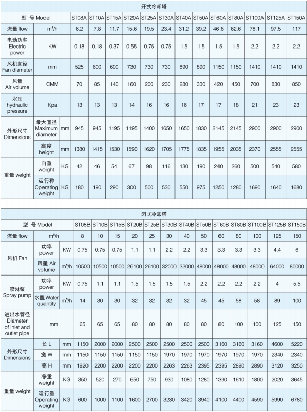 ST系列閉式水塔采用兩級(jí)方式冷卻,一級(jí)冷卻采用風(fēng)冷,依靠風(fēng)對(duì)冷卻器盤管進(jìn)行冷卻;二級(jí)冷卻采用風(fēng)冷和噴淋,在環(huán)境溫度比較高時(shí)使用二級(jí)冷卻,在風(fēng)冷的同時(shí)噴淋系統(tǒng)將水淋到冷卻器表面上,在水蒸發(fā)時(shí)能夠帶走盤管的熱量,通過(guò)頂部的風(fēng)機(jī)把濕熱空氣經(jīng)脫水器回收后排出機(jī)外,從而達(dá)到冷卻效果。環(huán)境溫度比較低時(shí),采用一級(jí)冷卻。噴淋水的消耗量也僅為單位流量 0.1 - 0.2‰。ST系列閉式循環(huán)冷卻塔 ( 蒸發(fā)式冷凝器 ) 作為熱處理行業(yè)的主要輔助設(shè)備,已廣泛運(yùn)用于熱處理淬火介質(zhì)、可控氣氛多用爐、感應(yīng)加熱爐、真空爐等等;同時(shí)也廣泛適用于中央空調(diào)、鍛造、鑄造、化工、食品、注塑、印刷、發(fā)電機(jī)組、電廠、玻璃熔窯等領(lǐng)域。